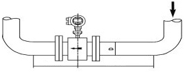 | 4.前后有彎管的安裝: 對(duì)于流量計(jì)前后有彎管的安裝,應(yīng)保證流量計(jì)的前直管段≥10D,后直管段≥5D | ![]() | |||||||||||||||||||